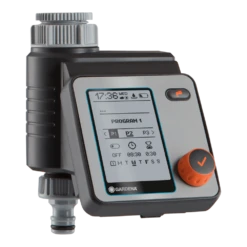 Met de GARDENA besproeiingscomputer Master kan de besproeiing bijzonder flexibel en individueel worden ingesteld. Er kunnen maximaal zes verschillende en onafhankelijke planningen worden gemaakt. Het apparaat werkt op batterijen, is rechtstreeks op de kraan aangesloten en kan eenvoudig worden bediend met alleen een draai- en drukknop om de gegevens te selecteren en te bevestiging. Een gemakkelijk leesbaar, volledig grafisch display toont alle instellingen in één oogopslag. Het menu kan in 10 talen worden ingesteld. Het weerbestendige bedieningspaneel kan worden verwijderd. Het is gemakkelijk om de besproeiingsduur centraal aan te passen of om alle besproeiingen bij slecht weer stop te zetten. De unit is ideaal voor het automatisch regelen van de GARDENA waterverdeler. De Water Control Master kan ook worden gebruikt in combinatie met een GARDENA bodemvochtigheidssensor.