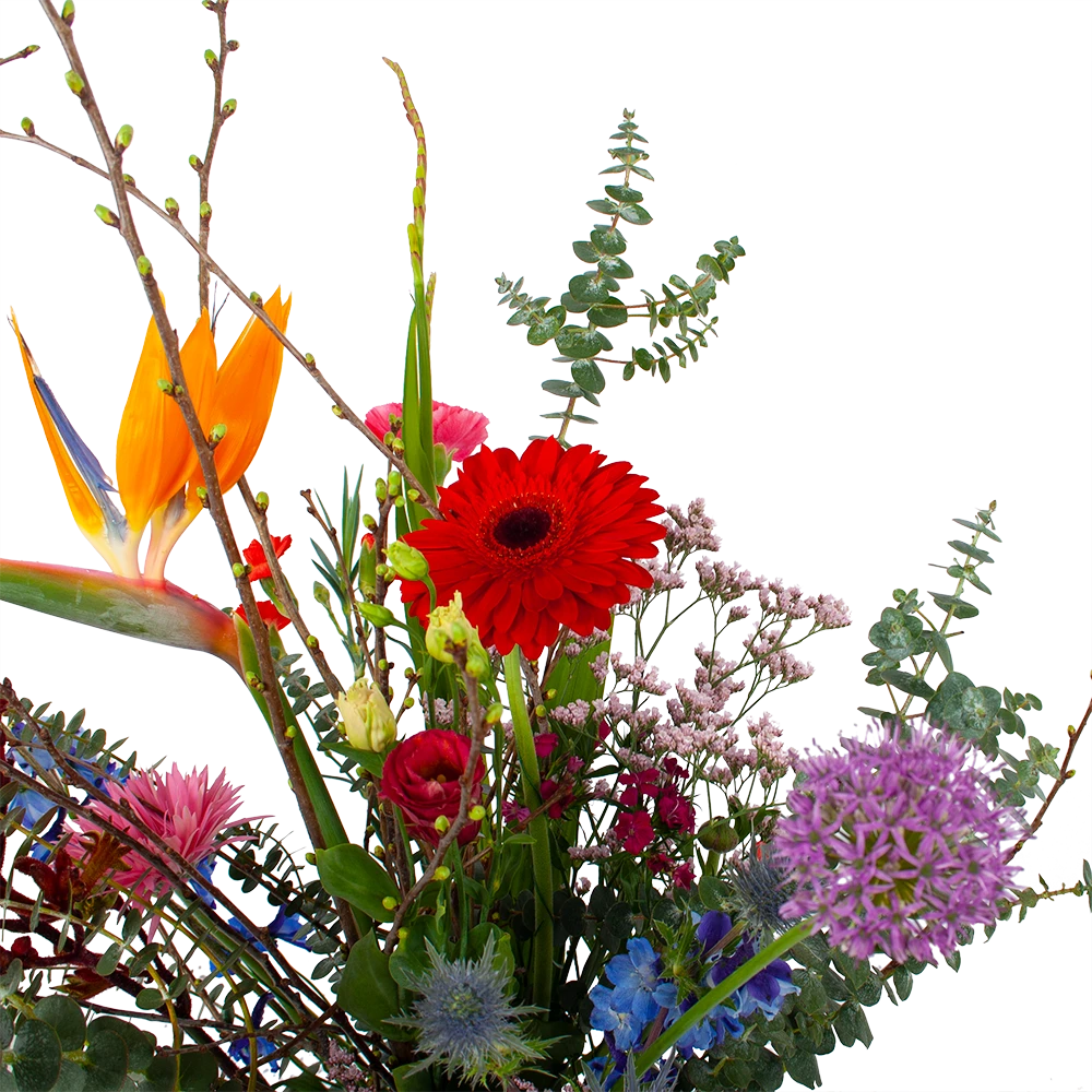 Met Boeket Deluxe Liefs mij haal je een kleurrijk veldboeket in huis! Geniet van het prachtige veldboeket met krachtige voorjaarskleuren. Altijd vers van de kweker! Verwen jezelf of verras iemand anders met een prachtig boeket. *Exclusief accessoires en vaas.