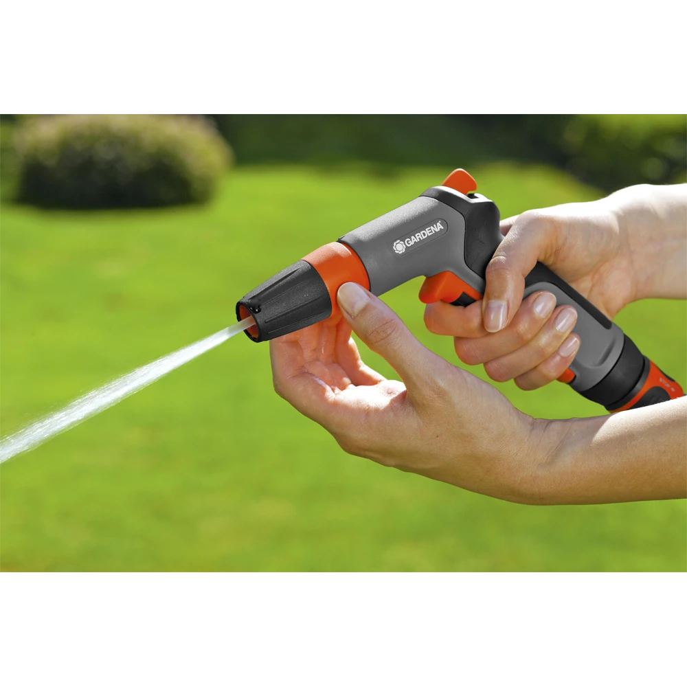 Het GARDENA Classic reinigingspistool met instelbare waterdoorvoer biedt alles wat u nodig heeft voor reinigings- en besproeiingswerkzaamheden in en rondom uw tuin. Met innovatieve, geïntegreerde technologie ter bescherming tegen vorst. Met instelbare waterdoorvoer heeft u altijd de juiste hoeveelheid water voor de toepassing. Zachte kunststofring beschermt tegen beschadiging. De harde straal is geschikt voor reinigingswerkzaamheden en de fijne nevelstraal is ideaal voor het besproeien van kwetsbare planten. Als het water achter elkaar moet blijven stromen, kunt u de hendel vastzetten. Een vermoeide hand wordt zo voorkomen.