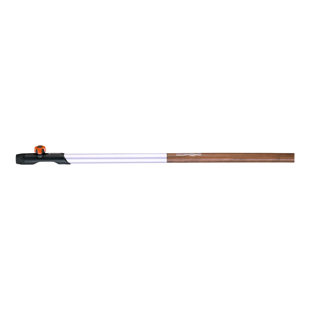 Met de Gardena Combi System houtensteel FSC 100 % kunnen alle Combi System-gereedschappen naar wens worden verlengd. Het hoogwaardige, veerkrachtige Europese essenhout dempt trillingen en heeft een FSC-certificaat. Dat betekent dat er voor de productie van de stelenuitsluitend hout uit goed beheerde en duurzame bossen wordt gebruikt. De getailleerde, 180 cm lange steel is antislip en ligt goed in de hand. Een geanodiseerde aluminium buis aan het eind van de steel heeft een kunststof ommanteling en staat borg voor een degelijke verbinding en een veilig houvast van het Combi System-gereedschap. De vastzetschroef met zachte kunststof componenten om het Combi System-gereedschap mee vast te zetten, is op een dusdanige manier veilig bevestigd dat je hem niet kunt verliezen.
