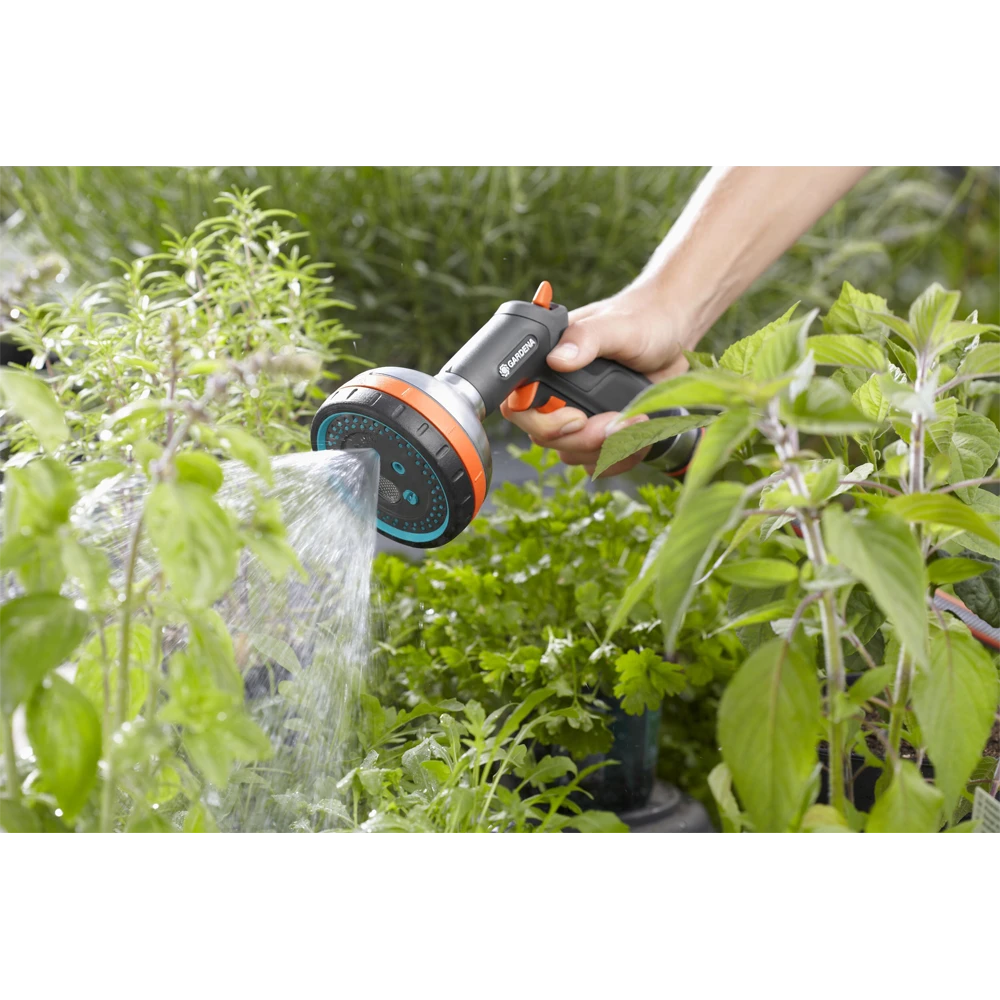 De GARDENA Premium Multi Broes is ideaal voor alle bewateringsklussen dankzij de 5 verschillende straalsoorten. De nevelstraal is perfect voor het bewateren van zaaigoed. De zachte straal of broesstraal zorgt ervoor dat de bloembedden goed kunnen worden bewaterd. De harde straal is voor reinigingswerkzaamheden. De Premium Multi Broes is voorzien van metalen componenten op de sproeikop en het verbindingsstuk waardoor het product zeer duurzaam is. De ergonomische handgreep zorgt voor optimaal gebruikscomfort. De waterstroom kan traploos worden ingesteld. Voor langdurige sproeiwerkzaamheden kan de impulshendel met de geïntegreerde knop worden vastgezet. Het filter kan worden verwijderd en schoongemaakt. De Premium Multi Broes beschikt bovendien over geïntegreerde bescherming tegen vorst.