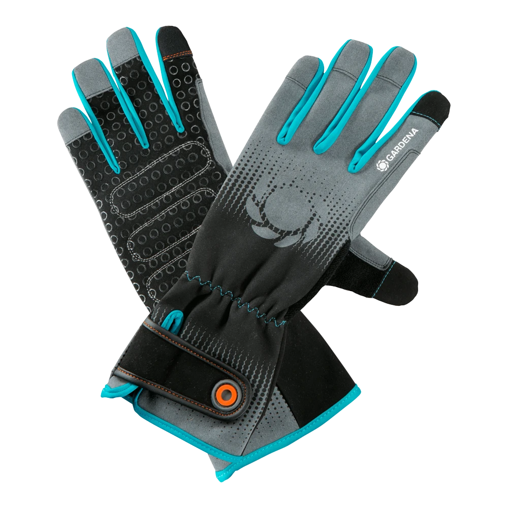 Als u de handschoen voor rozen in maat M van GARDENA draagt, kunt u voorzichtig werken en tegelijkertijd goed beschermd zijn. De tuinhandschoen voor middelgrote handen is voorzien van een lange boord met verstelbare polssluiting. Deze combinatie beschermt uw pols en uw onderarmen betrouwbaar. Bovendien worden bijzonder gevoelige gebieden zoals vingers en de handpalm beschermd met aramidemateriaal. Dit materiaal is perforatiebestendig, zodat doorns geen probleem meer zijn. Net zo praktisch: U kunt de tuinhandschoen met de Mobile Touch-functie op uw duim en wijsvinger gebruiken om het touchscreen van een smartphone of tablet eenvoudig te bedienen. Het vermoeiende uittrekken van handschoenen behoort tot het verleden met de voor smartphonegebruik geschikte handschoen. Een ander materiaalkenmerk dat de handschoen voor rozen biedt, is dat deze niet alleen beschermt, maar ook een Oeko-Tex® Standard 100-certificering heeft en dus vrij is van schadelijke stoffen.
