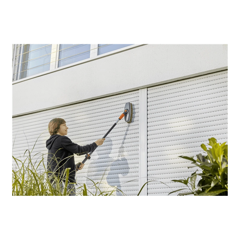 Met de GARDENA watersteel 90 kunt u alle accessoires van het Original GARDENA Cleansystem verlengen. De steel heeft een lengte van 90 cm en is gemaakt van hoogwaardig aluminium, waardoor de steel licht en stevig is. Dankzij de eenvoudige, stevige en veilige aansluittechnologie met schroefaansluiting kunnen alle accessoires van het Cleansystem eenvoudig op de steel worden aangesloten. De steel heeft een kunststof laag die prettig vasthoudt, krassen en slippen voorkomt en nooit koud aanvoelt. De hoeveelheid en druk van het water kunnen op de steel worden ingesteld. De watertoevoer is traploos instelbaar en kan worden vergrendeld. De praktische en breukvaste dispenser voor de verzorgingsproducten van GARDENA (art. nr. 1680-20, 1682-20, 1684-20, 5730-20) is in de watersteel geïntegreerd. U kunt met schoon water werken en/of verzorgings- of reinigingsmiddelen toevoegen.